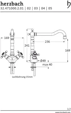 - Hahnlochbohrung mit Ø 35 mm erforderlich