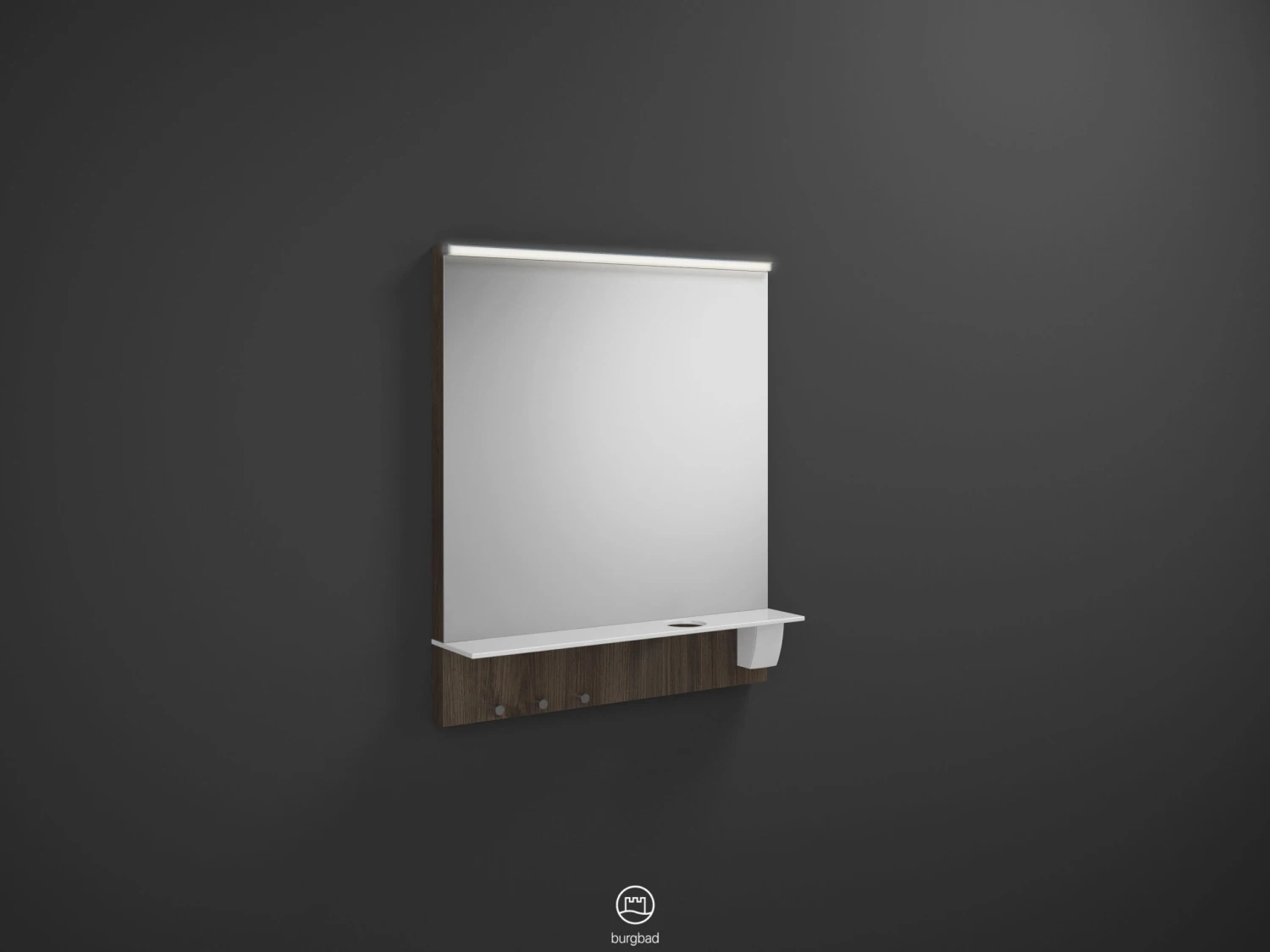 Burgbad Eqio Leuchtspiegel SEZQ065F2012 65 X 76,9 X 15 Cm, Marone Dekor Trüffel, Horizontale LED-Aufsatzleuchte, Ablage