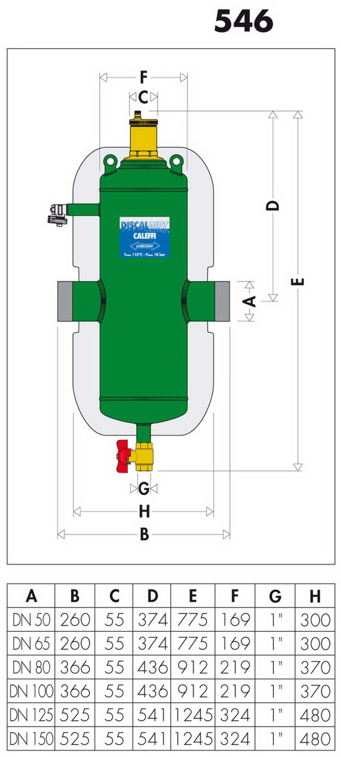 Caleffi Discal Mikroblasen-Schlammabscheider 546103 DN 100, Stahl-Gehäuse, Schweißanschlüsse, Mit Isolierung