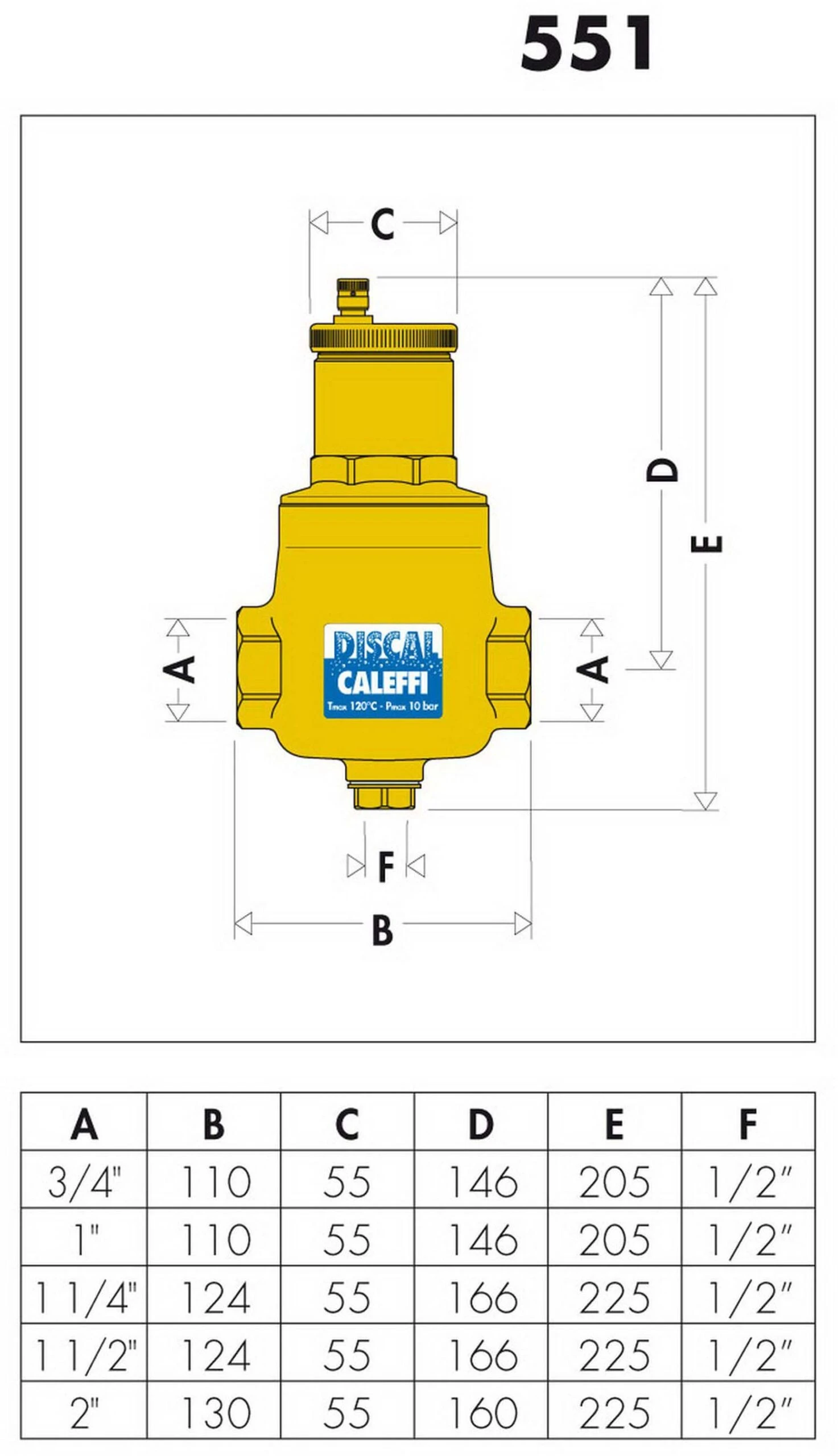 Caleffi Discal Mikroblasenabscheider 551008 1 1/2″ IG, Messing-Gehäuse, Mit Entleerungsstutzen