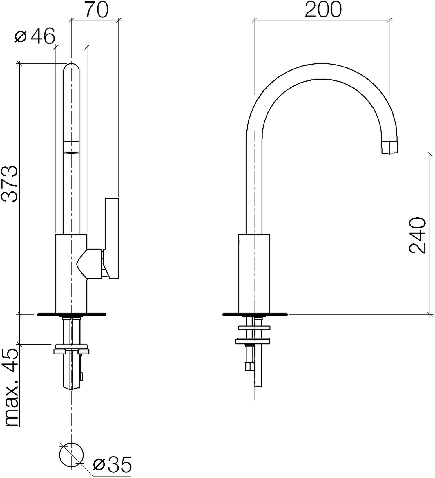 Dornbracht Tara Ultra Spültisch-Einhebelmischer 33800875-06 Griff Rechts, Ausladung 200 Mm, Platin Matt
