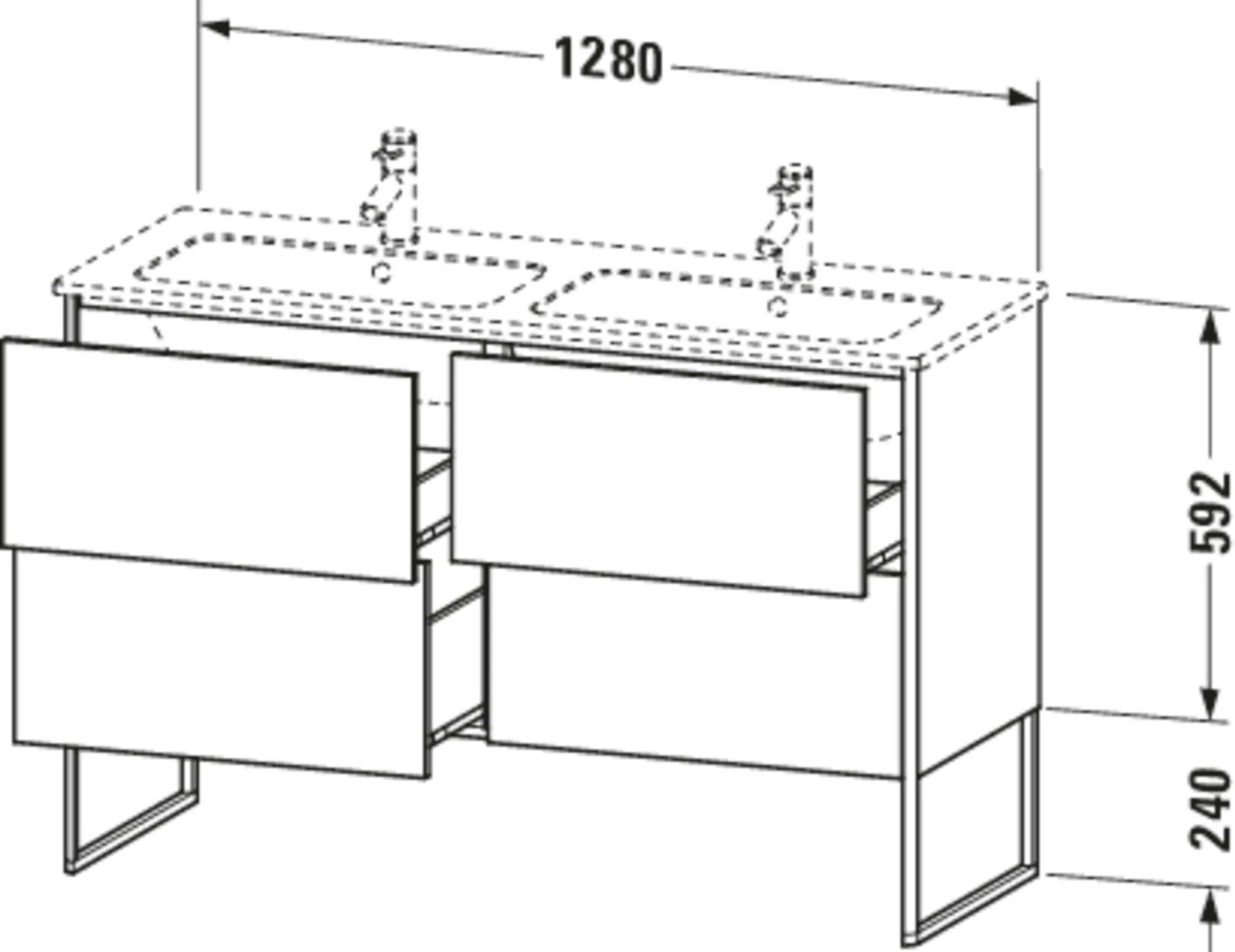 Duravit XSquare Waschtisch-Unterschrank XS444904040 128×59,2×47,8cm, 4 Auszüge, Schwarz Hochglanz