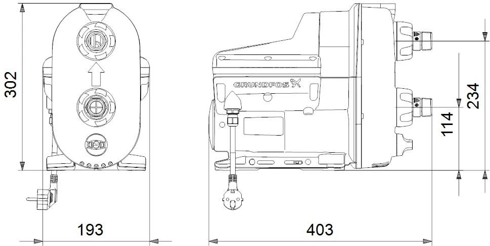 Kaum ein Hauswasserwerk lässt sich aktuell mit so wenig Platzbedarf installieren. Der Verzicht auf den großen Tank reduziert die Geräteabmessungen auf 40×20×30cm.