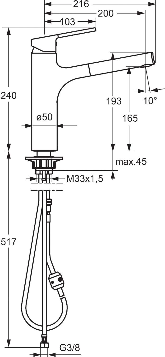 | Ausziehbarer Einlauf mit Perlator | ja |