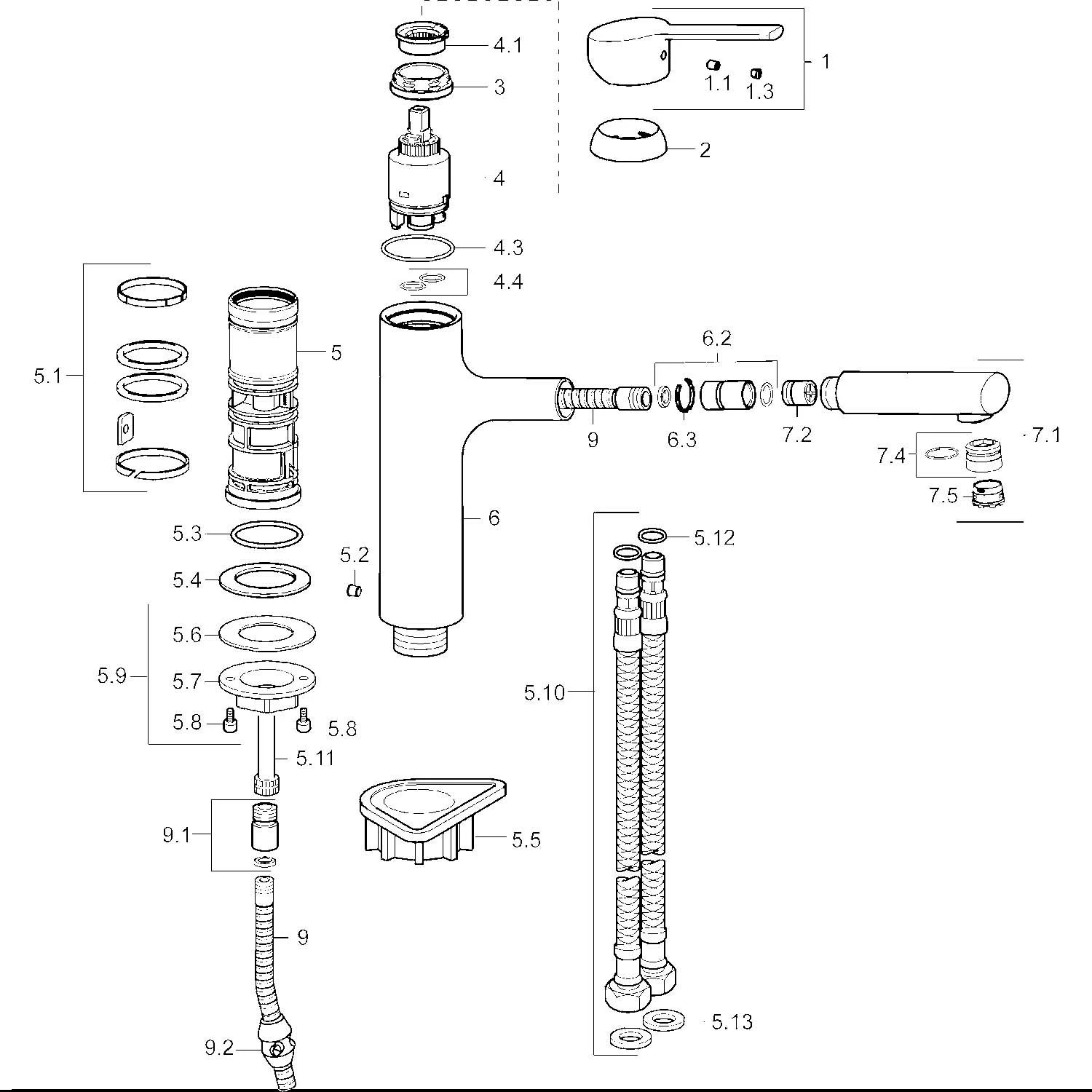 - Armaturenkörper: entzinkungsarmes Messing (MS 63)