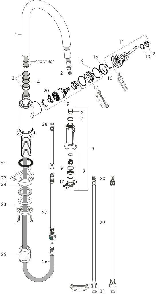 - Schwenkbereich 110° / 150°