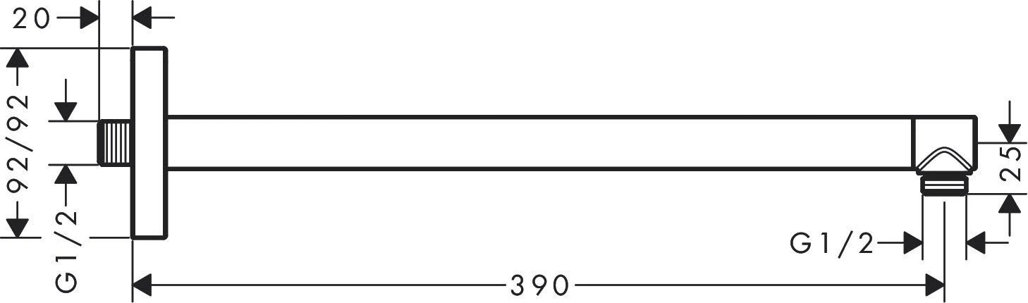 Hansgrohe Brausearm 26967670 390mm, Eckig, Mattschwarz