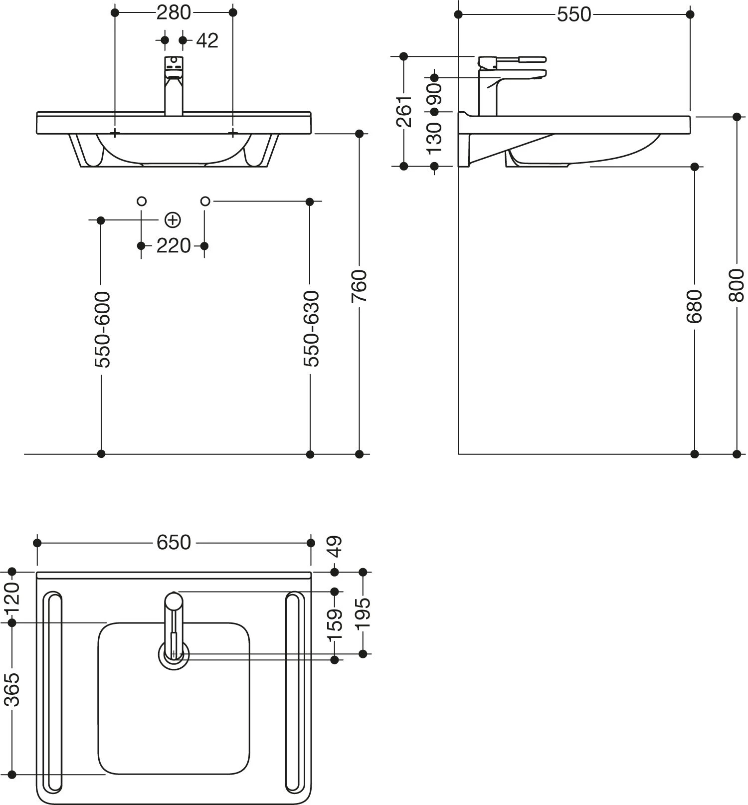 Hewi Mineralguß-Waschtischset 950.19.06895 65x55cm, Weiß, Mit Waschtischarmatur, Felsgrau
