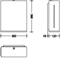 - 300 mm breit, 360 mm hoch und 135 mm tief