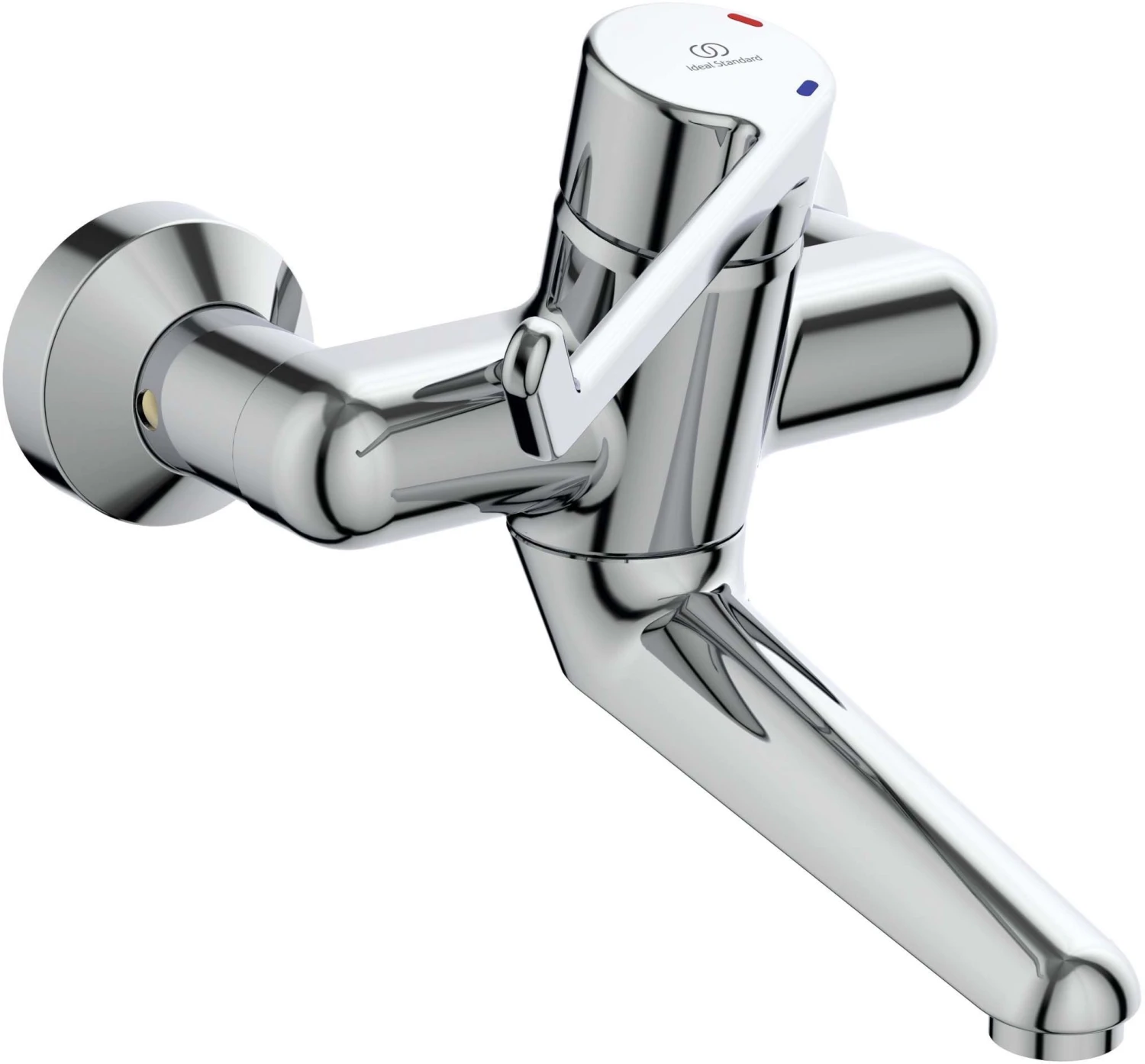 Ideal Standard Waschtischarmatur CERAPLUS B8222 Wand Hebel 180mm Auslauf 150mm chrom Einhebel-Wand- Waschtischsicherheitsarmatur DN 15 mit dreifach verstellbarem Gussauslauf (fixiert, nicht fixiert, +/- 45 Grad fixiert), vandalensicherem Luftsprudler, Schubrosetten und absperrbaren, geräuschgedämpften, verdeckten S- Anschlüssen, Drehsicherheitskartusche, öffnet links drehend über kalt nach warm, Oberfläche AA Chrom Ausladung 230 mm Auslauflänge 150 mm Bedienungshebel 180 mm aus Metall mit permanenter Rot/Blau Markierung, CLICK-Kartusche mit keramischen Dichtscheiben, Kartuschenübersetzung Metall umspritzt, Schwenkbereich 125 Grad, integriertes Fettreservoir und Heisswassertemperaturkontrolle, Lebensdauertest EN 817 Geräuschverhalten DIN 4109, Gruppe 1 Hersteller IDEAL STANDARD Serie CeraPlus Sicherheitsarmaturen Artikel-Nr. B 8222 AA, Oberfläche AA Chrom