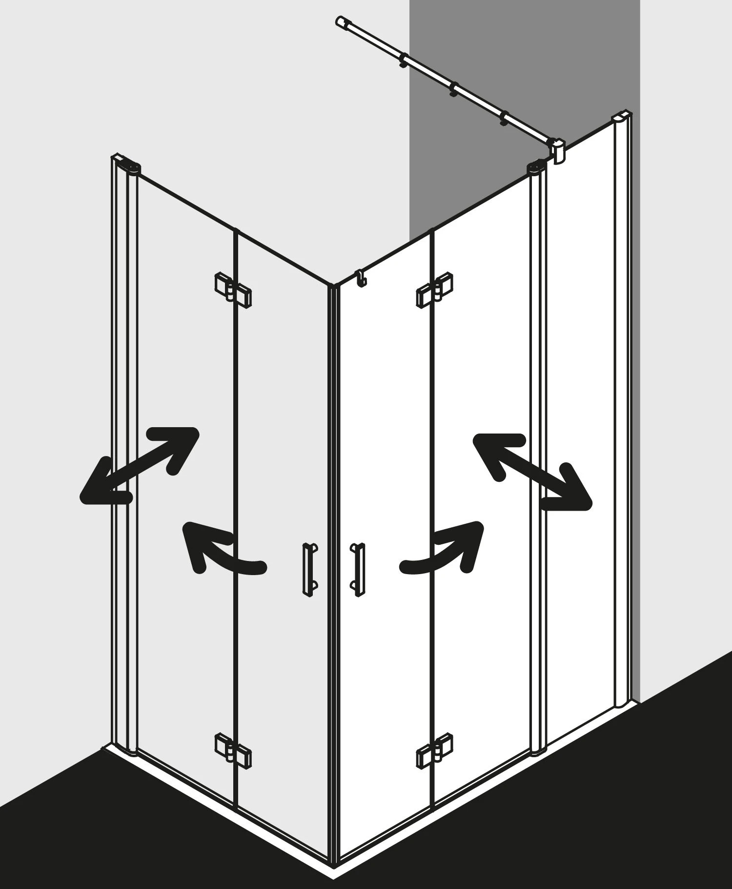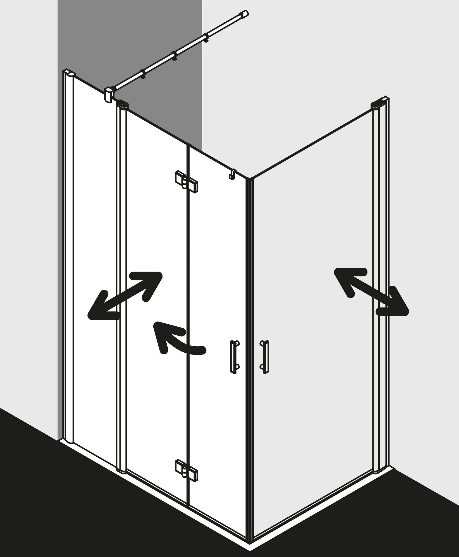 Kermi Diga Eckeinstieg-Hälfte Pendel-Falttür m Festfeld DIF2L103202PK