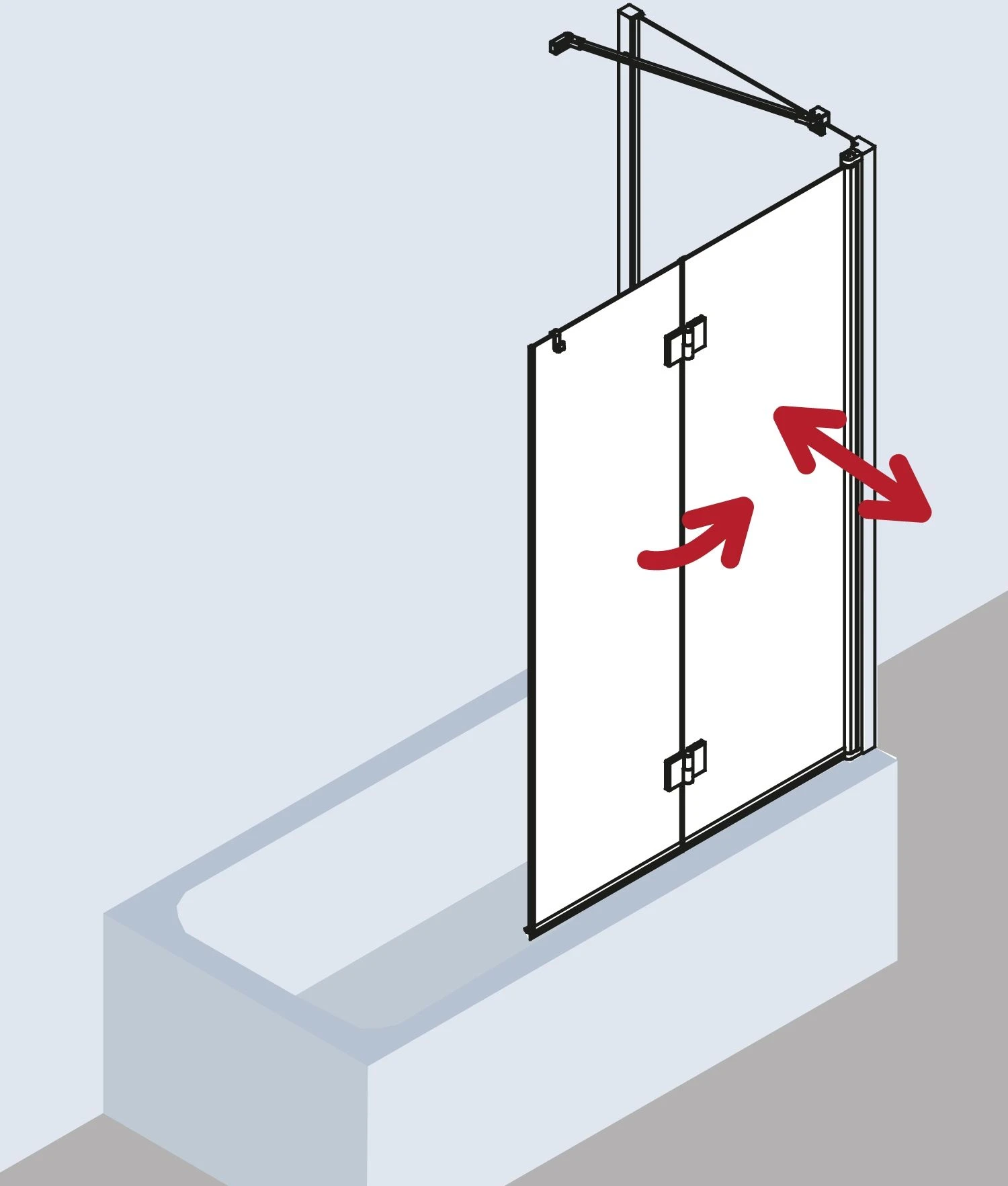 - mit zwei Glasflügeln – im Wandgelenkprofil 90° nach innen und außen schwenkbar