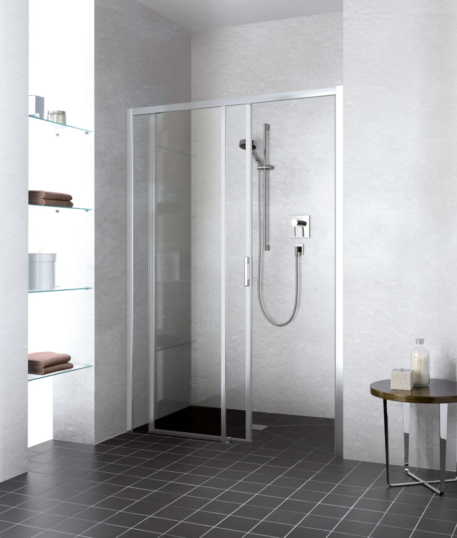 Kermi Liga Gleittür 2-tlg. Bodenfrei Mit Festfeld LID2L110201PK 106-111x200cm, Silber Mattglanz, ESG Klar Clean, Links, Auf Duschwanne
