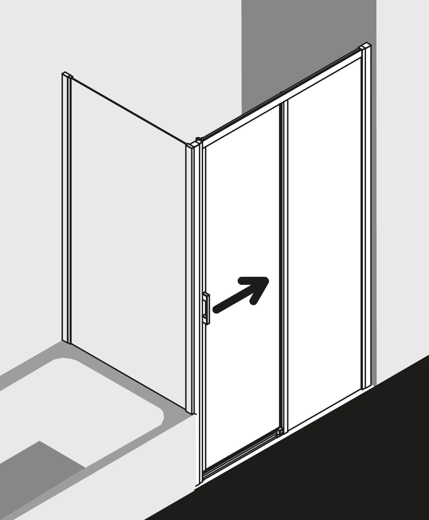 Kermi Liga Gleittür 2-tlg. Bodenfrei Mit Festfeld LID2L15520VAK 151-156x200cm, Silber Hochglanz, ESG Klar, Links, Auf Duschwanne