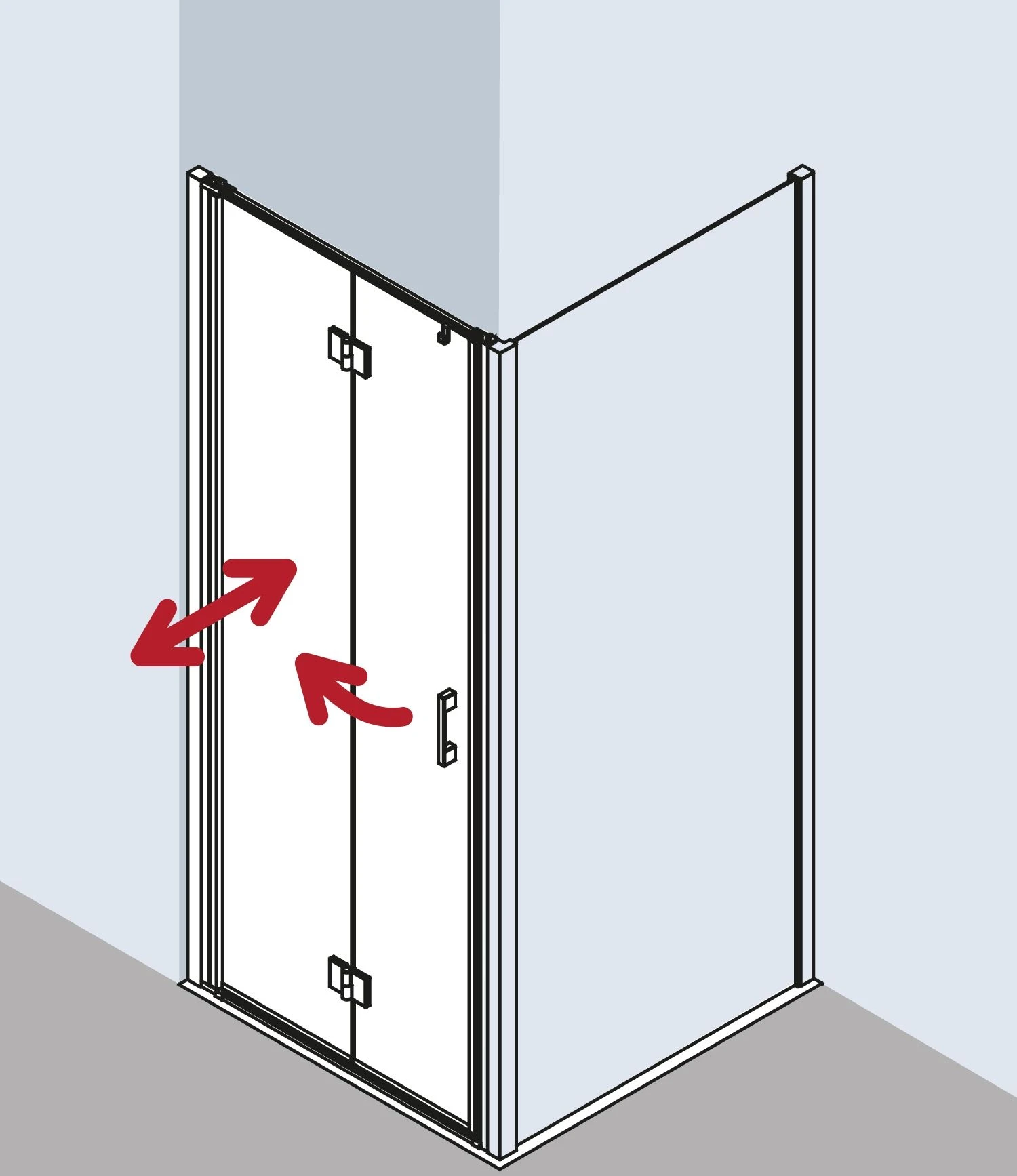 - mit zwei Glasflügeln – im Wandgelenkprofil 90° nach innen und außen schwenkbar