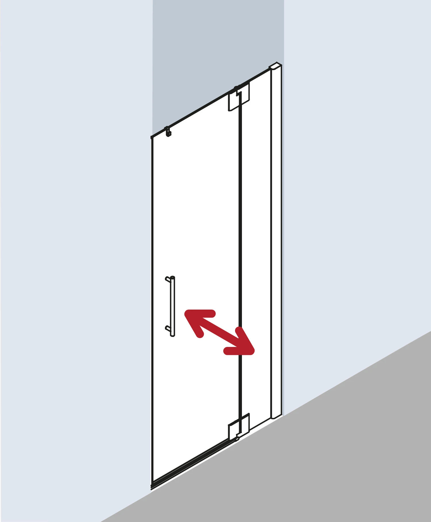 Kermi Pasa XP Pendeltür 1-flügelig Mit Festfeld PX1TR11018VUK 110x185cm, Silber Hochglanz, ESG SR Opaco, Rechts