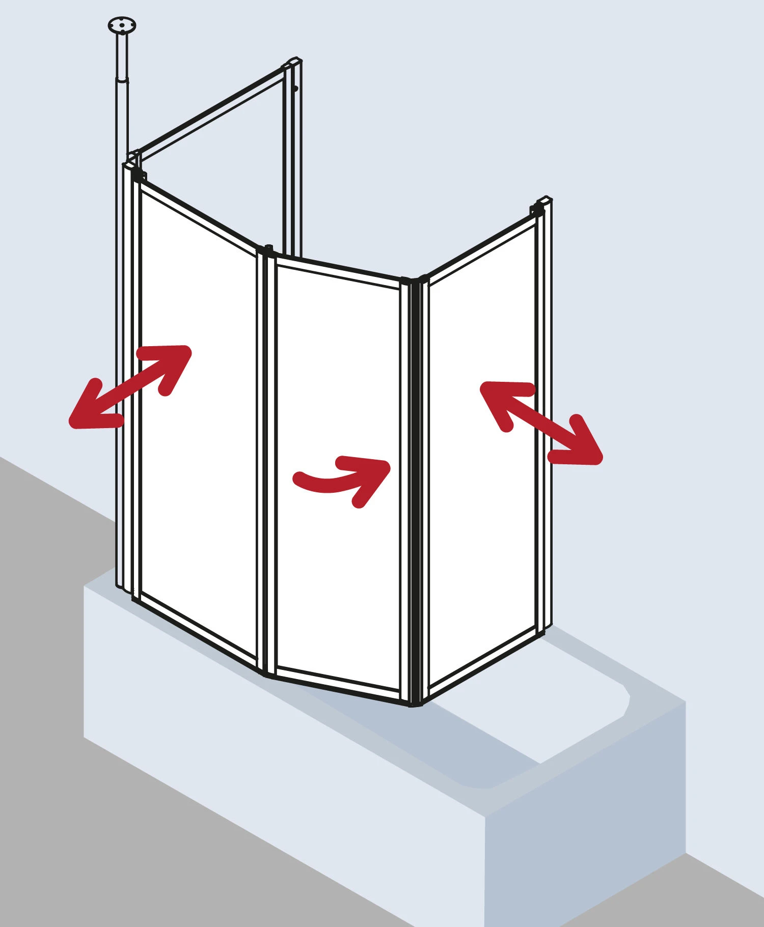 - bestehend aus Faltwand 2-flügelig auf Badewanne und Faltwand 1-flügelig über Badewanne mit Magnetverschluss