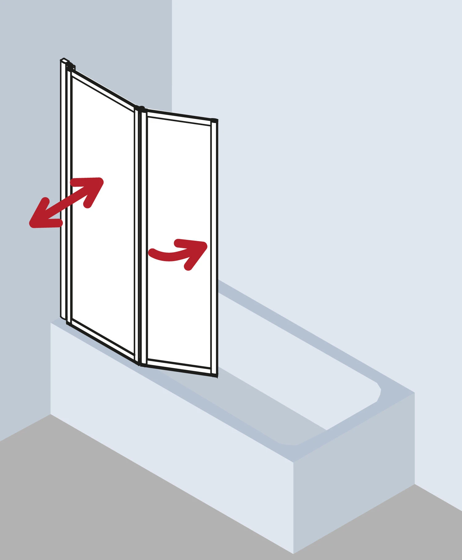 - mit zwei Flügeln – im Wandprofil 90° nach innen und außen schwenkbar
