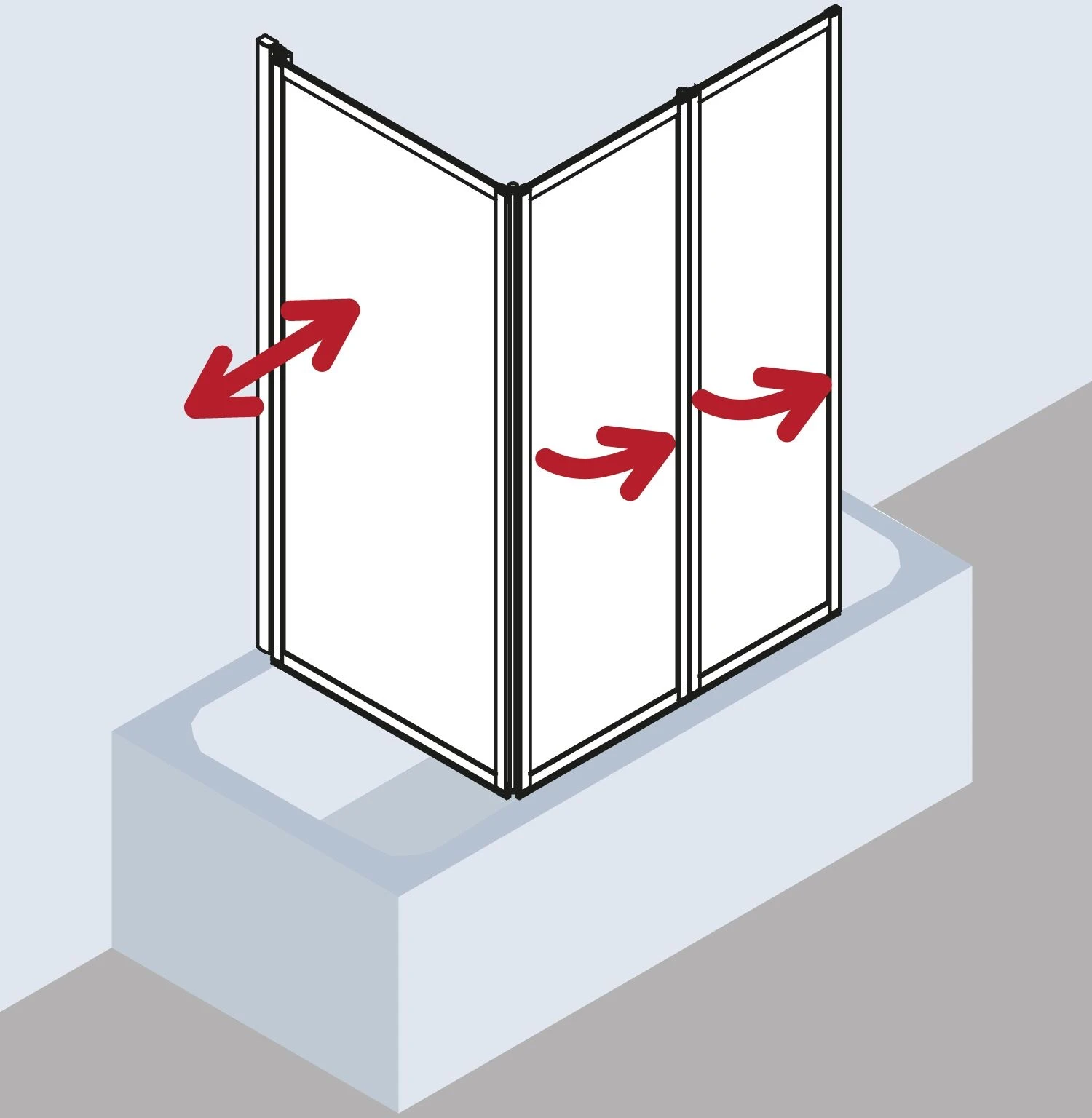 Kermi Vario 2000 Faltwand 3-tlg. V2FW3065141UK 73,5-76,8x140cm, Silber Mattgl., ESG SR Opaco