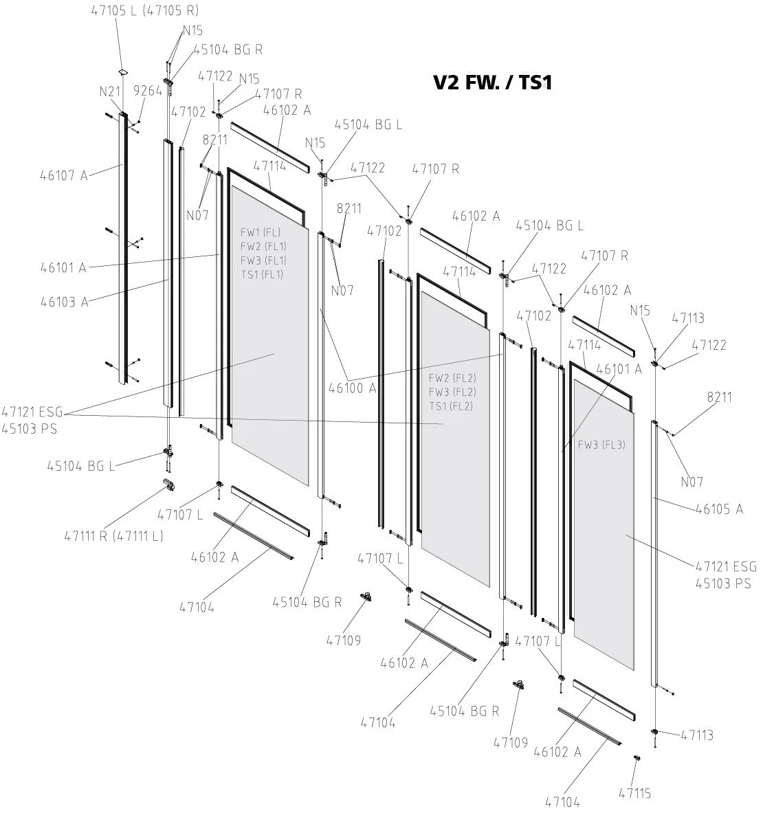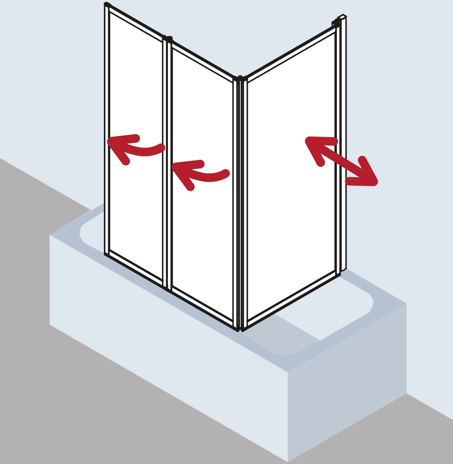 Kermi Vario 2000 Faltwand 3-tlg. V2FW30701412K 78,5-81,8x140cm, Silber Mattglanz, Kerolan Perl