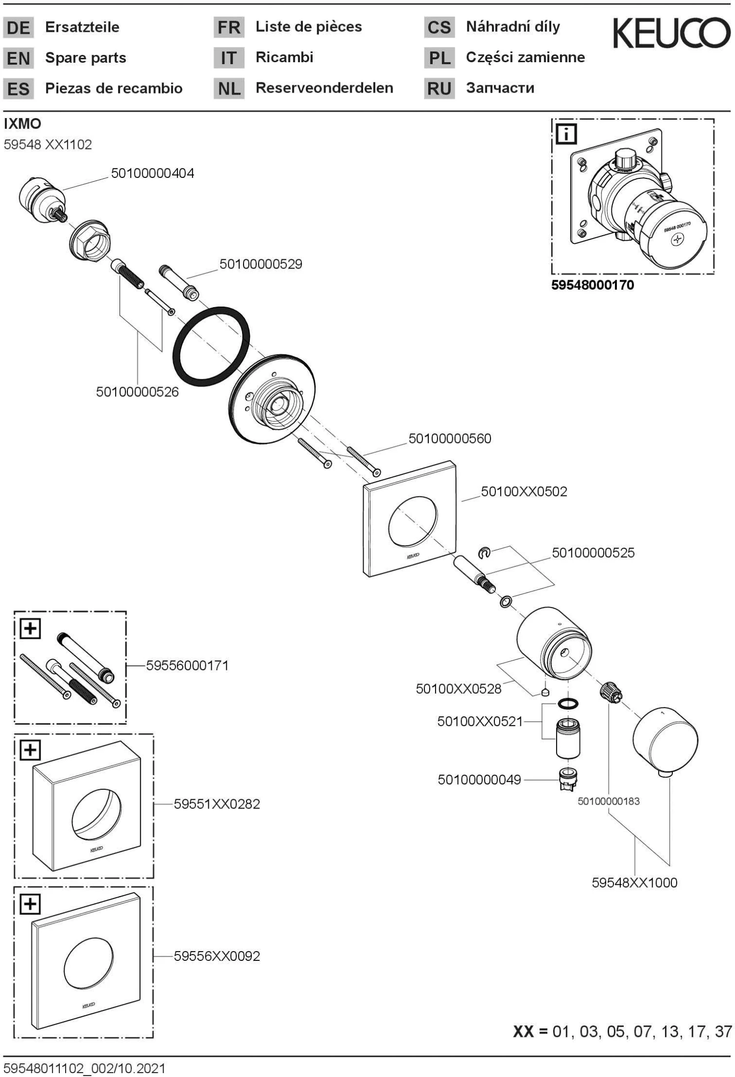 Keuco Ixmo Fertigmontageset 59548011102 Unterputz-3-Wege-Umstellventil, Schlauchanschluss, Griff Comfort, Eckig, Verchromt