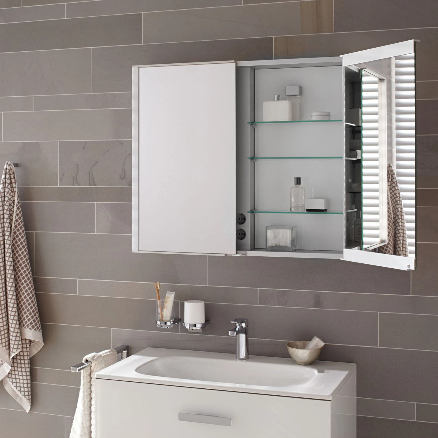 - vertikale Beleuchtung an beiden Seiten, Türen drehen sich um die Beleuchtung