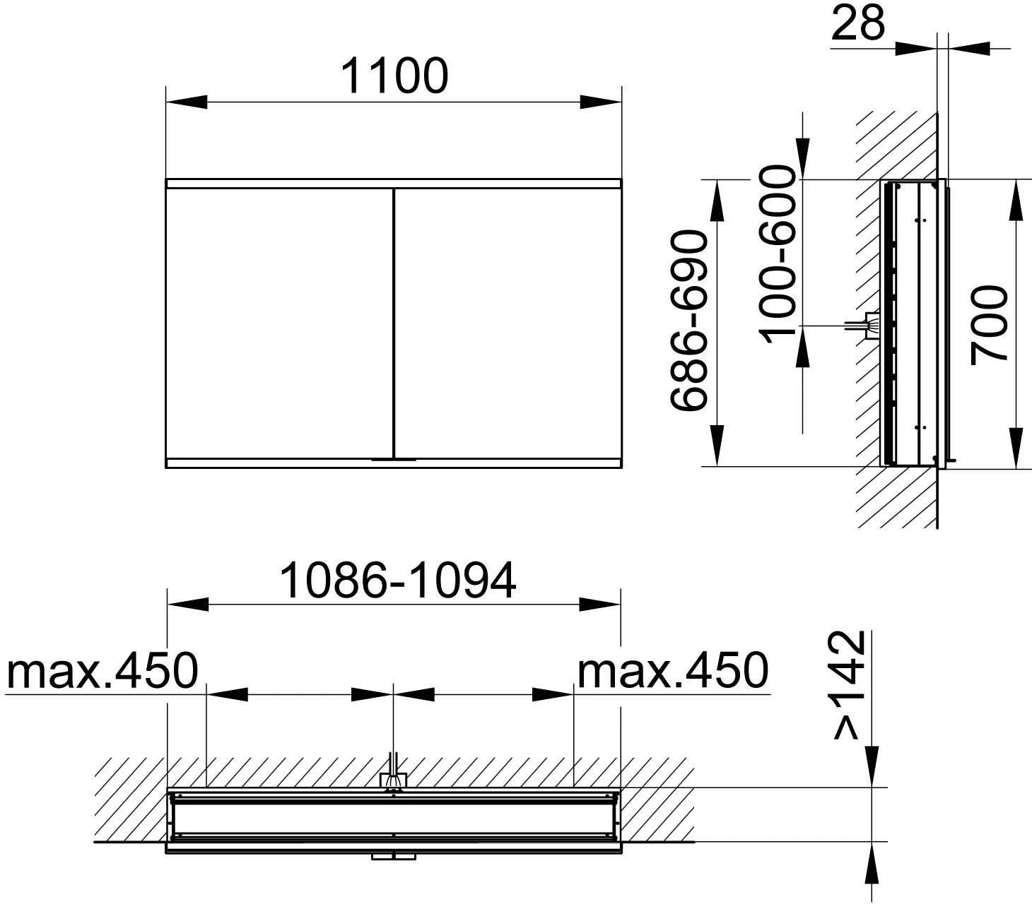 Keuco Royal Modular 2.0 Spiegelschrank 800220110100000 1100 X 700 X 160 Mm, Ohne Steckdose, Wandeinbau, 2-türig, DALI