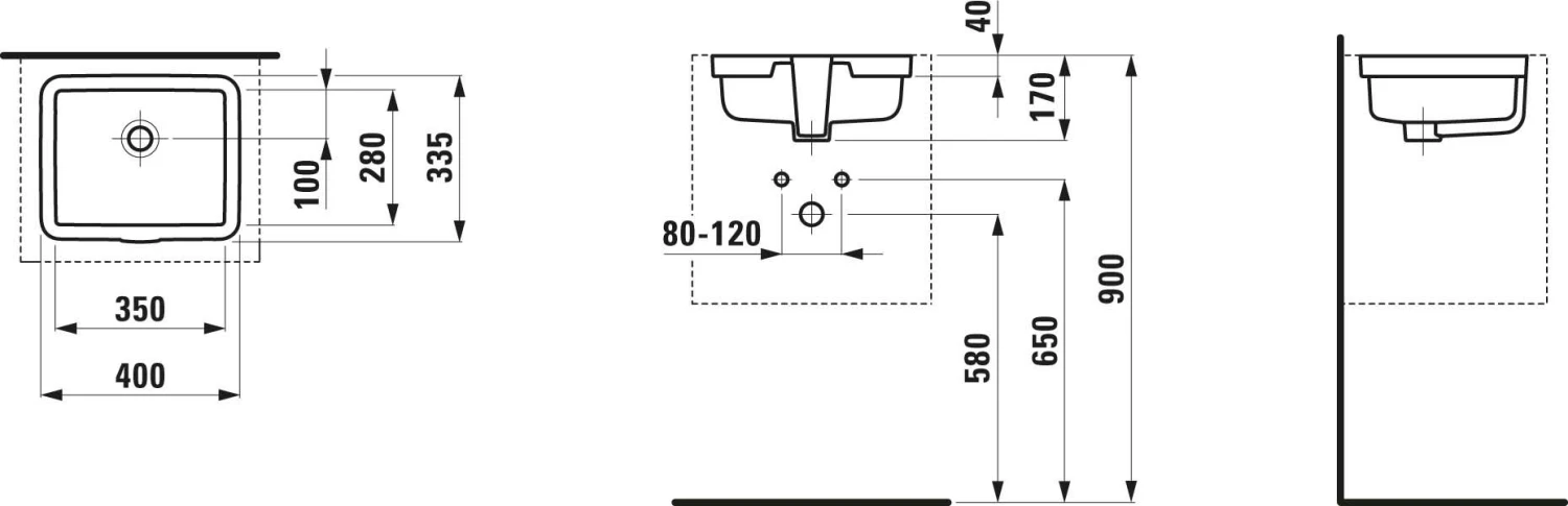 LAUFEN Living City Einbauwaschtisch 8124320001551 40×33,5cm, Weiß, Mit Überlauf, Ohne Hahnloch