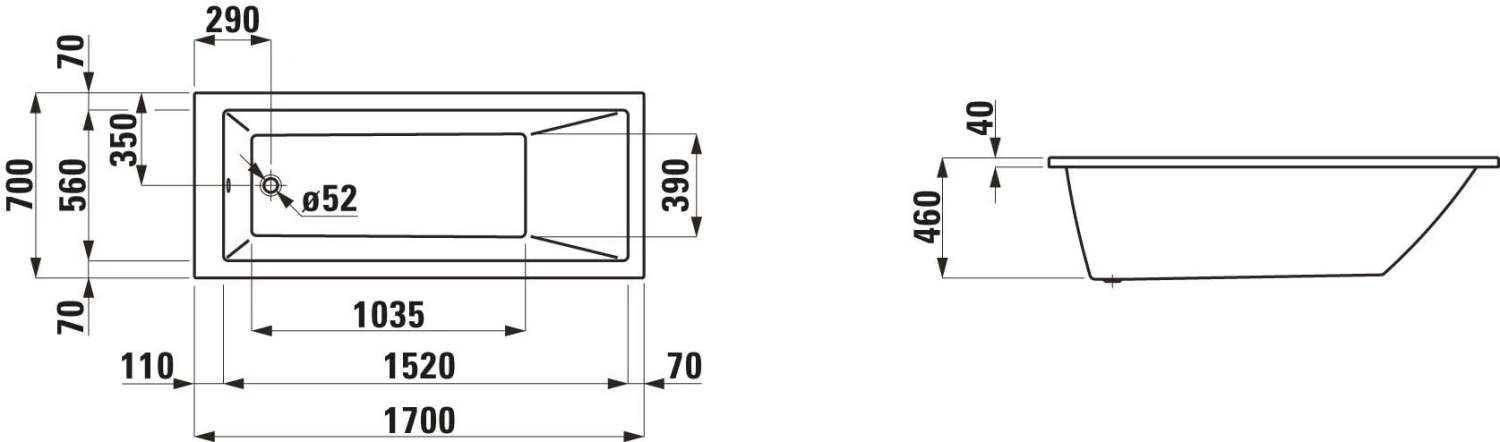 LAUFEN Pro Badewanne 2309500000001 170 X 70 Cm, Ohne Fußgestell, Weiß, Einbau