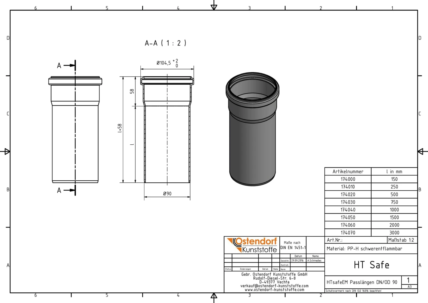 Ostendorf HTsafe HTsafe-Rohr 174000 DN/OD 90, 150mm