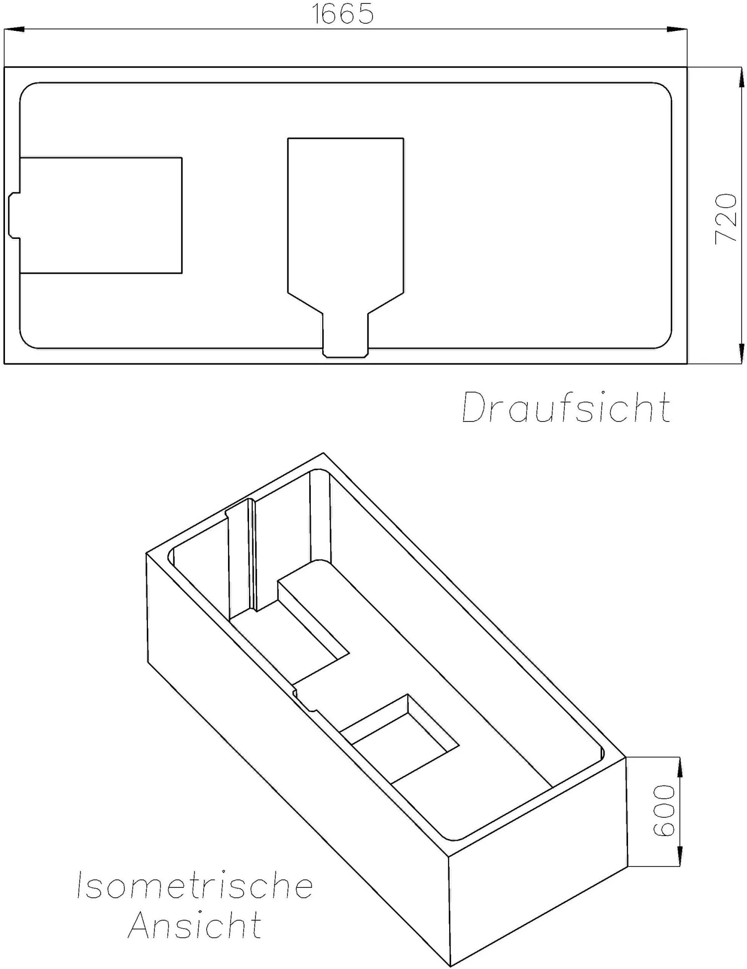 - 170x75cm, Mittellablauf, Höhe 60cm