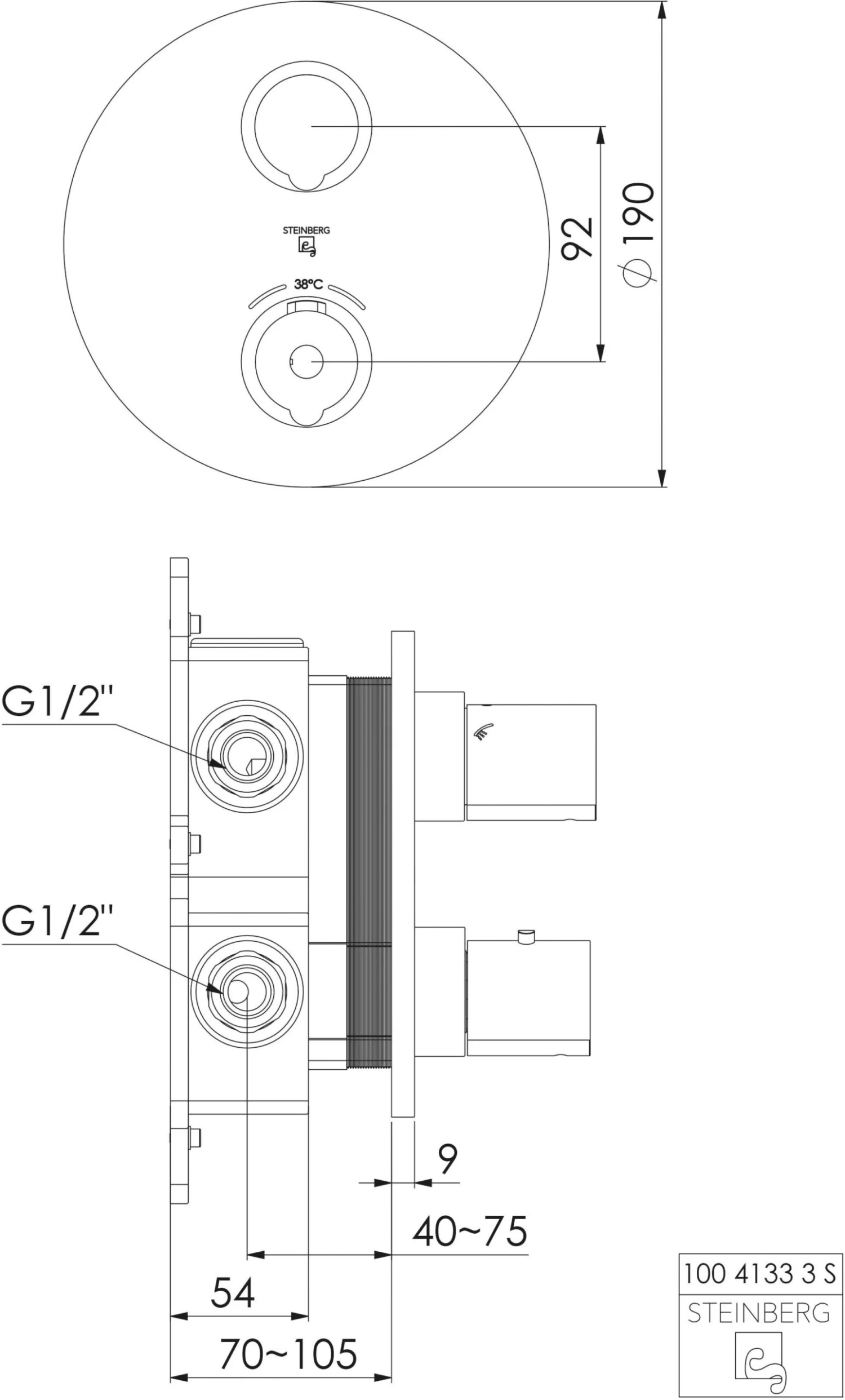 Steinberg Serie 260 Fertigmontageset 10041333S Für Unterputzthermostat, Matt Black