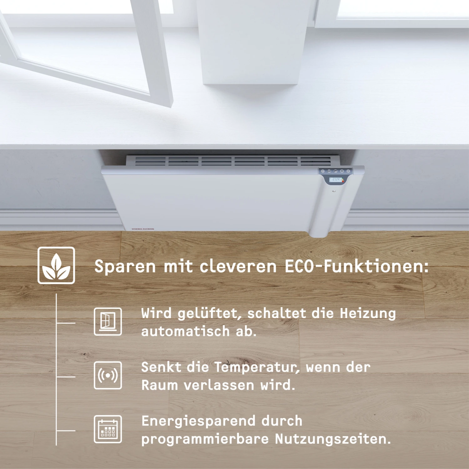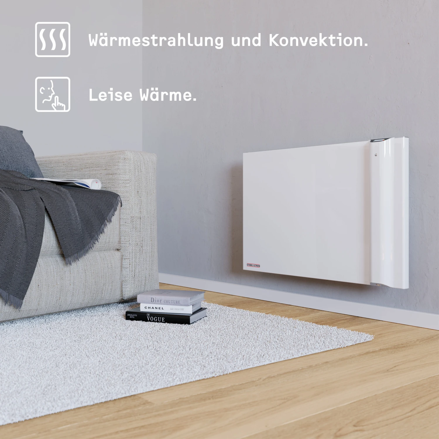 - Designheizkörper mit 2 Heizsystemen für Wärmestrahlung und Konvektion mit präziser elektronischer Regelung und intelligenten Energiesparfunktionen