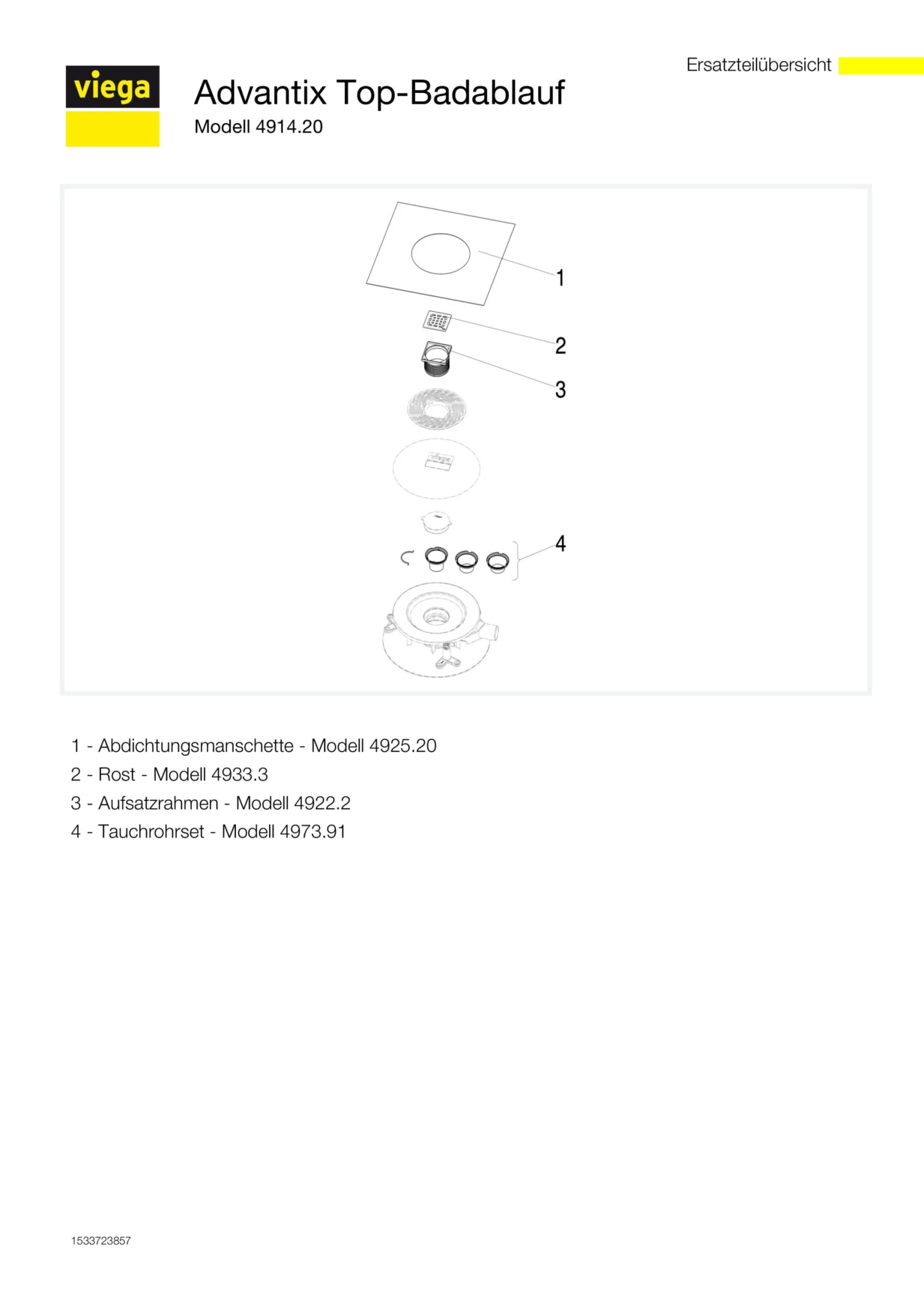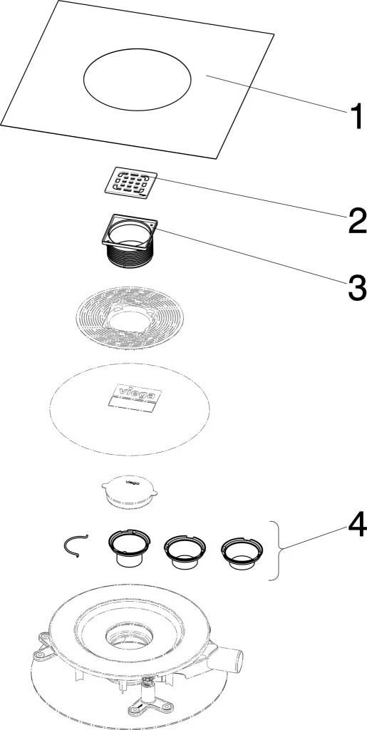 Viega Badablauf-Grundkörper Advantix 4914.2 DN 50, Aufsatz Mit Rahmen Aus Kunststoff
