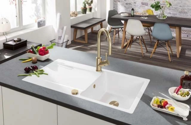 Villeroy Und Boch Flächenbündige Spüle 33351FR1 Mit Ablaufgarnitur Und Handbetätigung, Weiß