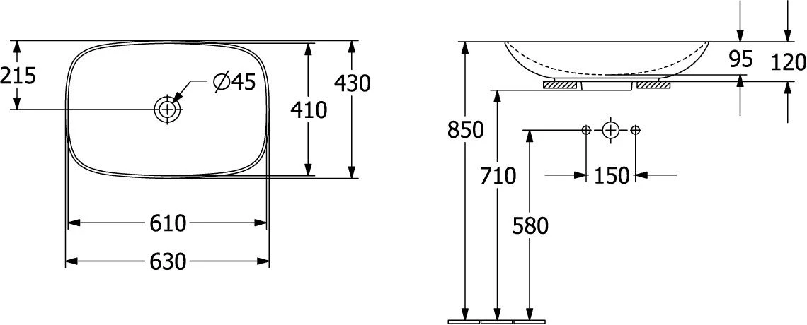 - für Wandauslauf-Armatur oder Armatur mit erhöhtem Standfuß